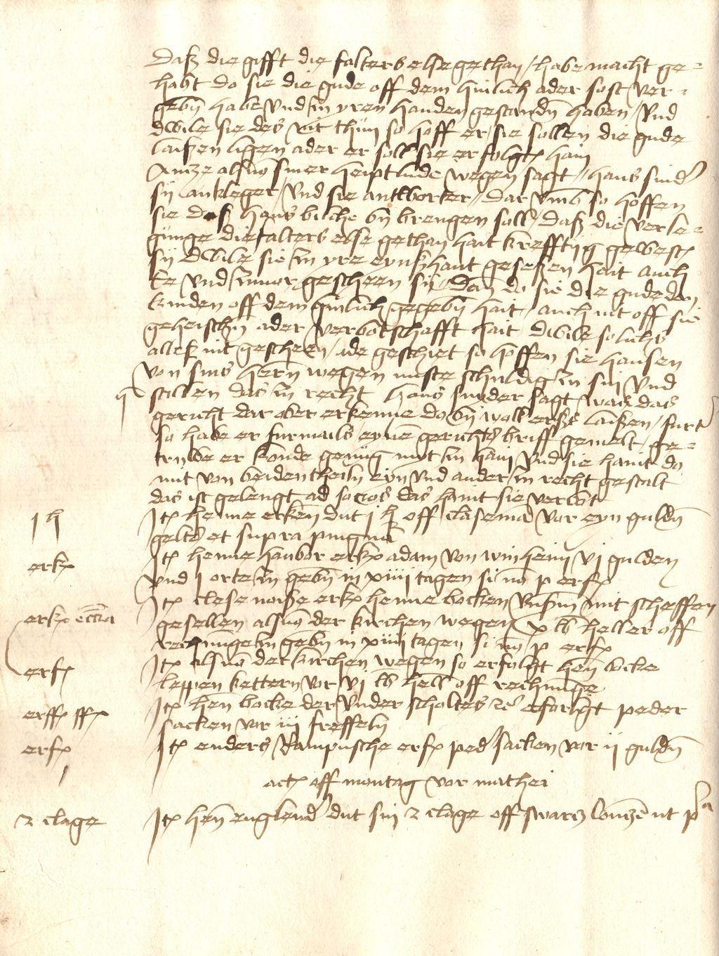 Henne Ercker erhebt seine 1. Klage gegen Claseman wegen 1 Gulden Geld auf die Pfänder.