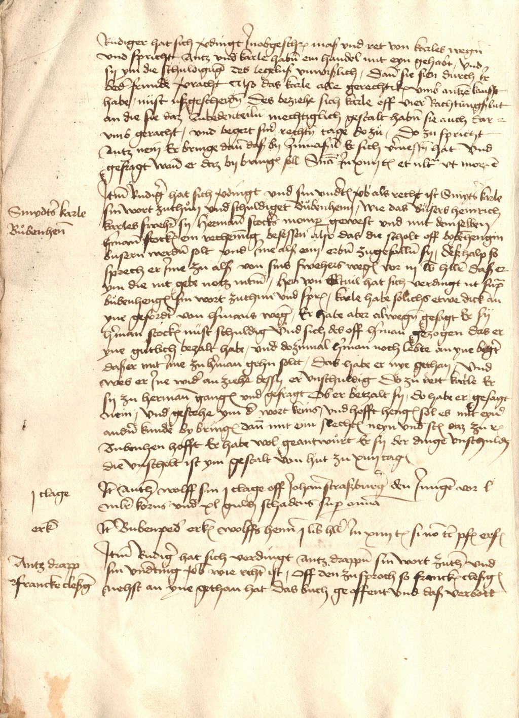 vnd ʃpricht Antz vnd karle hab(e)n ein handel mit eyn gehabt / Vnd