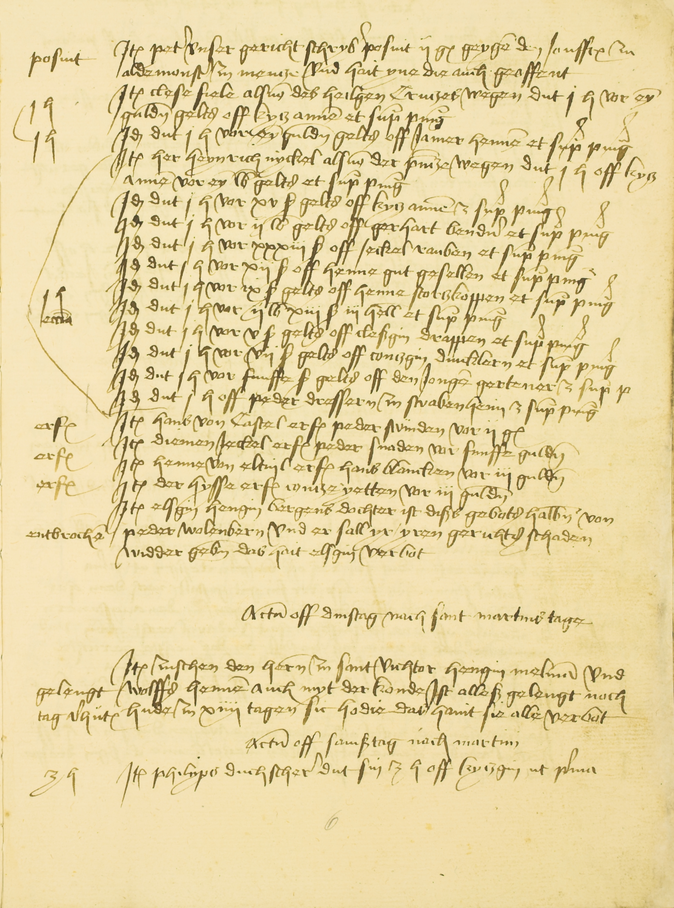 Peter, unser Gerichtsschreiber, hinterlegt 2 Gulden für die Nonnen zu Altmünster in Mainz und hat ihnen die auch geöffnet.