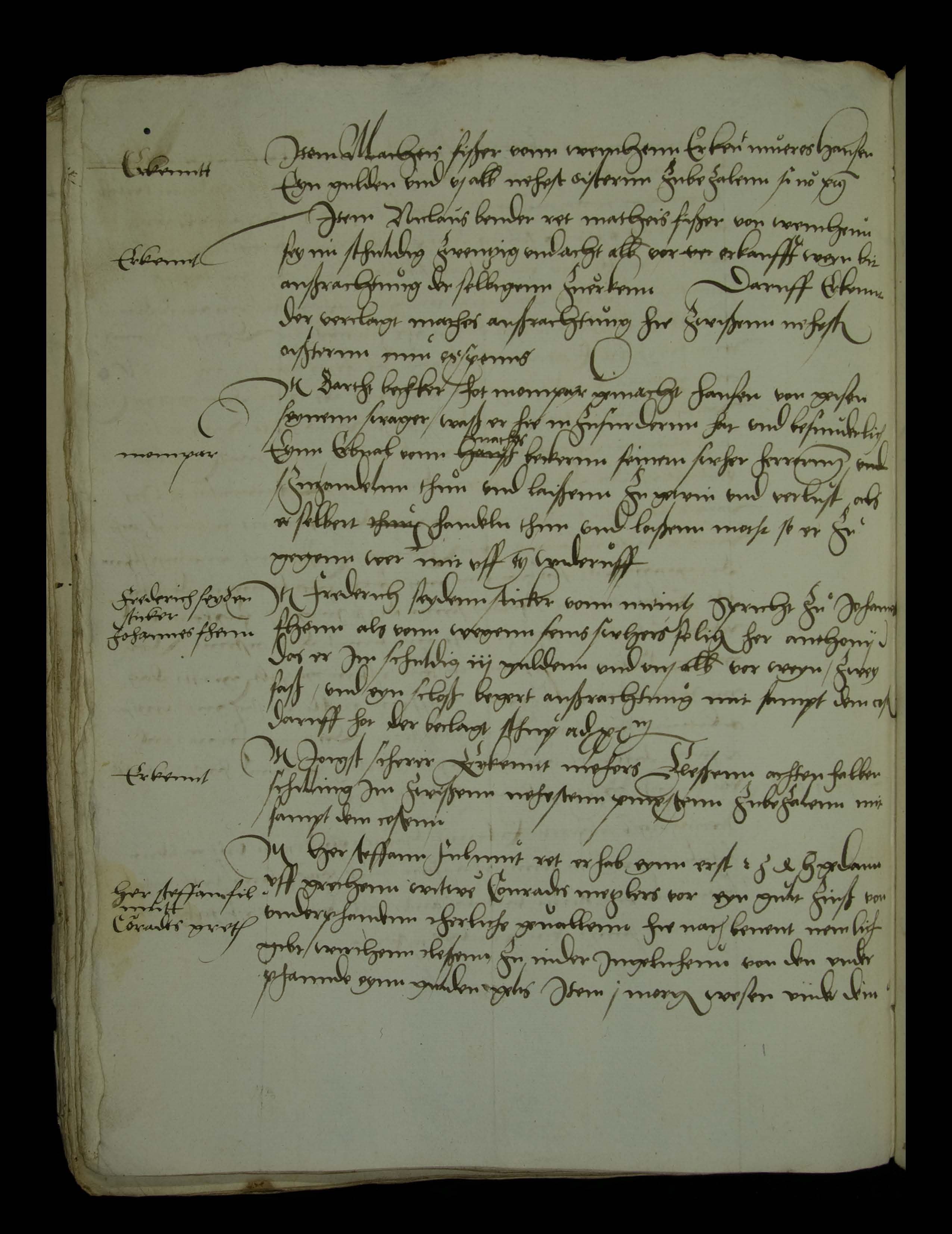 Friedrich Seydensticker aus Mainz hat eine Forderung an Johannes Fhen für seinen verstorbenen Schwager Anthonius usw. Dieser ist ihm drei Gulden und acht Albus für Wein, zwei Fässer und ein Schloss schuldig. Er begehrt Entrichtung mit den Kosten.Darauf hat der Beklagte Aufschub erhalten bis zum nächsten Gerichtstag.