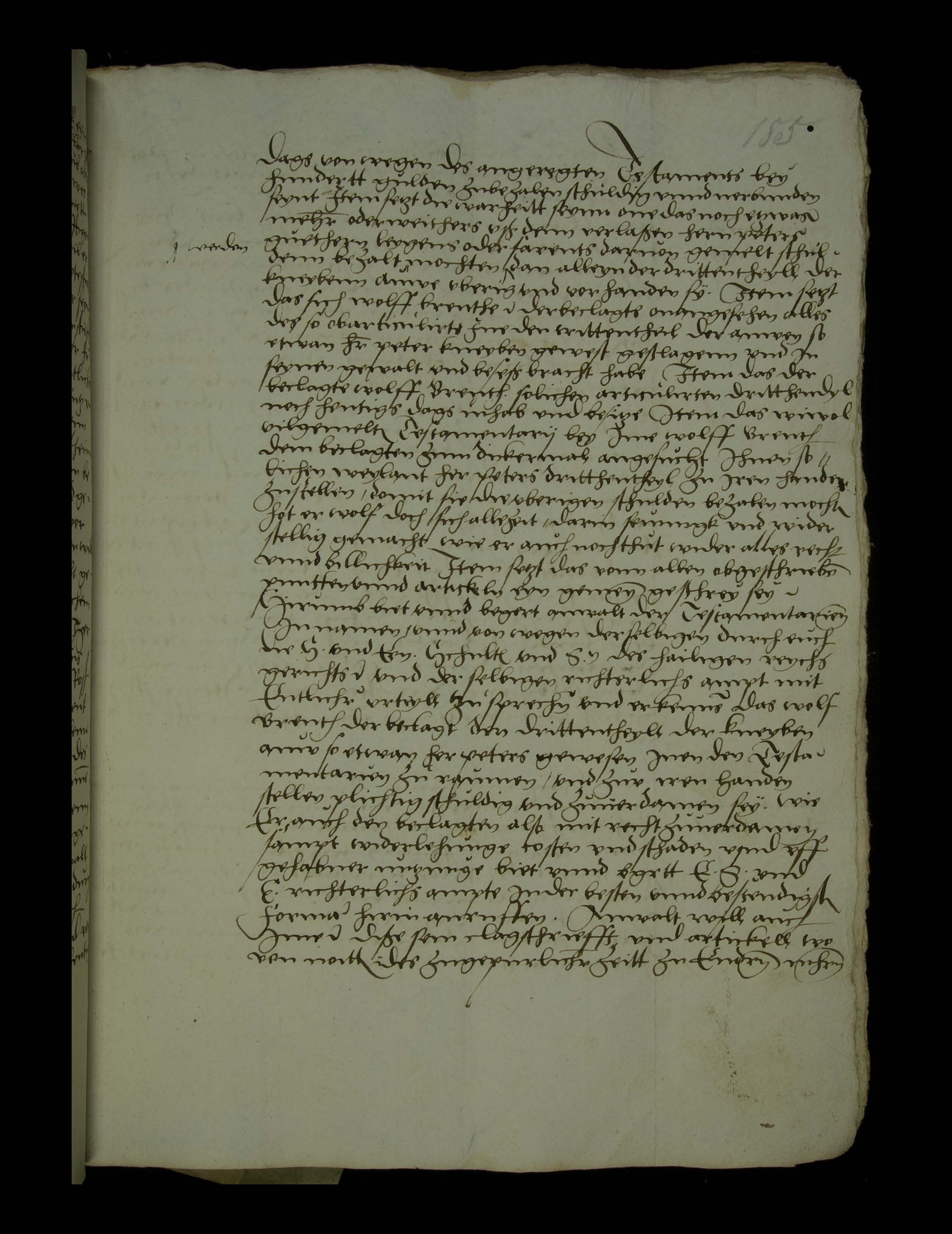 Tag wegen des erwähnte Testaments 100 Gulden zu bezahlen schuldig und verbunden sind. Ebenso ist es die Wahrheit, dass von den hinterlassenen liegenden und beweg-lichen Gütern Peters, von denen die besagten Schulden bezahlt werden könnten, nichts mehr oder weiter übrig und vorhanden ist, als nur allein der dritte Teil der Kneibenaue. Ebenso ist wahr, dass der beklagte Wolff Bronner usw., unangesehen all dessen, wie es oben erwähnt wurde, ihm das Drittel der Aue, das einst Peter Kneib gewesen ist, übertragen und in seine Gewalt und seinen Besitz gebracht hat, ebenso, dass der beklagte Wolff Bronner eben dieses Drittel noch heutzutage innehat und besitzt. Ebenso, dass, obwohl die genannten Testamentarier bei dem beklagten Wolf erneut angesucht haben, ihnen dieses ehemaliges Drittel Peters zu ihren Händen zu stellen, damit sie die übrigen Schulden bezahlen könnten, Wolff sich allezeit darin säumig und widerspenstig gemacht hat, wie er es auch noch tut, gegen alles Recht und jede Gerechtigkeit. Ebenso ist wahr, dass über alle obengeschriebenen Punkte und Artikel ein allgemeines lautes Gerede herrscht. Deshalb beantragt und begehrt der Anwalt der Testamentarier im Namen und für dieselben durch euch, die strengen und ehrenwerten Schultheiß und Schöffen des heiligen Reichsgerichtes usw. und durch euer richterliches Amt mit abschließendem Urteil auszusprechen und zu erkennen, dass Wolff Bronner, der Beklagte, verpflichtet und dazu zu verurteilen ist, das Drittel der Kneibenaue, das einst Herrn Peter gewesen ist, den Testamentariern einzuräumen und zu ihren Händen zu stellen, wie er auch beantragt und begehrt, den Beklagten gerichtlich zu bestrafen samt Erstattung von Kosten und Schaden sowie der aufgehobenen Nutzung, und ruft euer strenges und ehrenwertes richterliches Amt in der besten und beständigsten Form hierzu an. Der Anwalt will sich auch vorbehalten haben, seine Klageschrift und Artikel, wenn notwendig, jedes zu gebührenden Zeit zu ändern, zu mehren