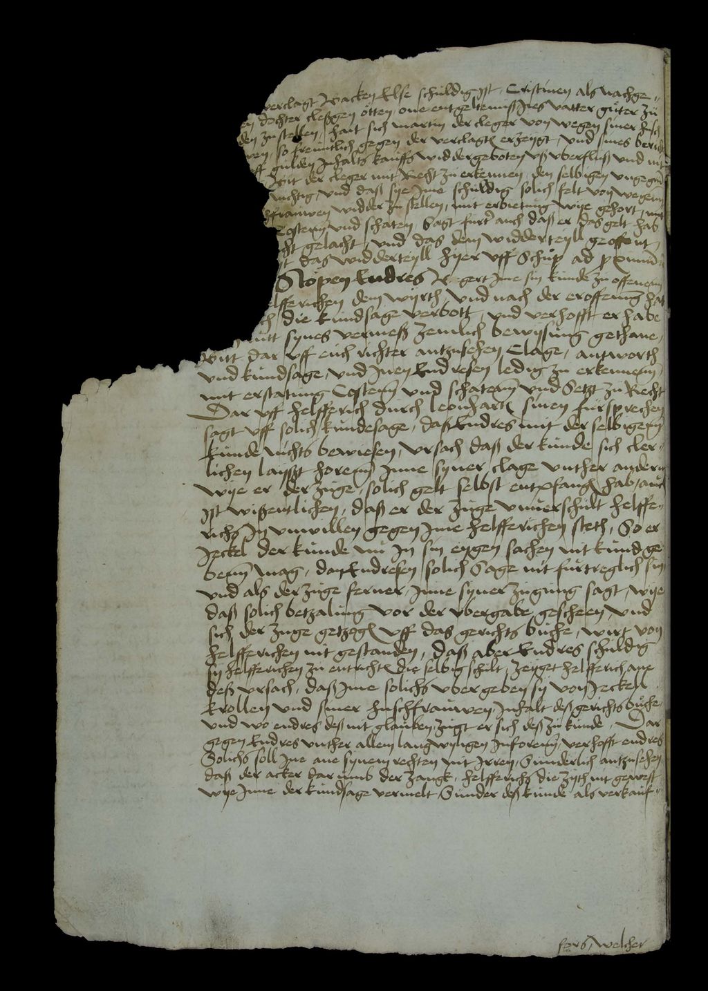 Endres Stope fordert, seinen Beweis zu öffnen gegen Helffrich den Wirt. Und nach der Eröffnung hat er die Zeugenaussage festhalten lassen und hofft, er habe gemäß seiner Behauptung einen angemessenen Beweis erbracht. Bittet darauf Euch, die Richter, Klage, Antwort und Aussage zu betrachten und ihn, Endres freizusprechen mit Erstattung der Unkosten und des Schadens und legt das dem Gericht vor. Darauf sagt Helffrich durch Lenhart [Fluck] seinen Fürsprecher auf solche Zeugenaussage: Dass Endres mit dieser Zeugenaussage den Beweis nicht erbracht habe, denn der Zeuge sagt klar in seiner Aussage neben anderen Dingen, dass er, der Zeuge, das Geld selbst empfangen habe. Auch ist bekannt, dass der Zeuge ohne die Schuld Helffrichs im Streit stehe mit Helffrich. Wenn er, Jeckel der Zeuge, nun in seinen eigenen Sachen nicht Aussage machen kann, dann sei Endres diese Aussage nicht zuträglich. Und wenn der Zeuge weiter in seiner Zeugenaussage sagt, dass die Bezahlung vor der Übergabe geschehen sei und der Zeuge sich auf das Gerichtsbuch beruft, das wird von Helffrich nicht gestanden. Dass Endres schuld sei, Helffrich die Schuld zu zahlen, das beweist Helffrich dadurch, dass ihm dies übergeben worden sei von Jeckel Kroll und seiner Frau gemäß dem Gerichtsbuch. Und wenn Endres das nicht glaube, dann beruft er sich deswegen auf den Beweis. Dagegen redet Endres mit vielen langwierigen Einwendungen und hofft, solches soll ihn nicht an seinem Recht irre machen. Sondern es soll beachtet werden, dass der Acker, um den der Zank gehe, Helffrich zu dieser Zeit nicht gehört habe, wie in der Zeugenaussage vermerkt. Sondern der Zeuge als Verkäufer