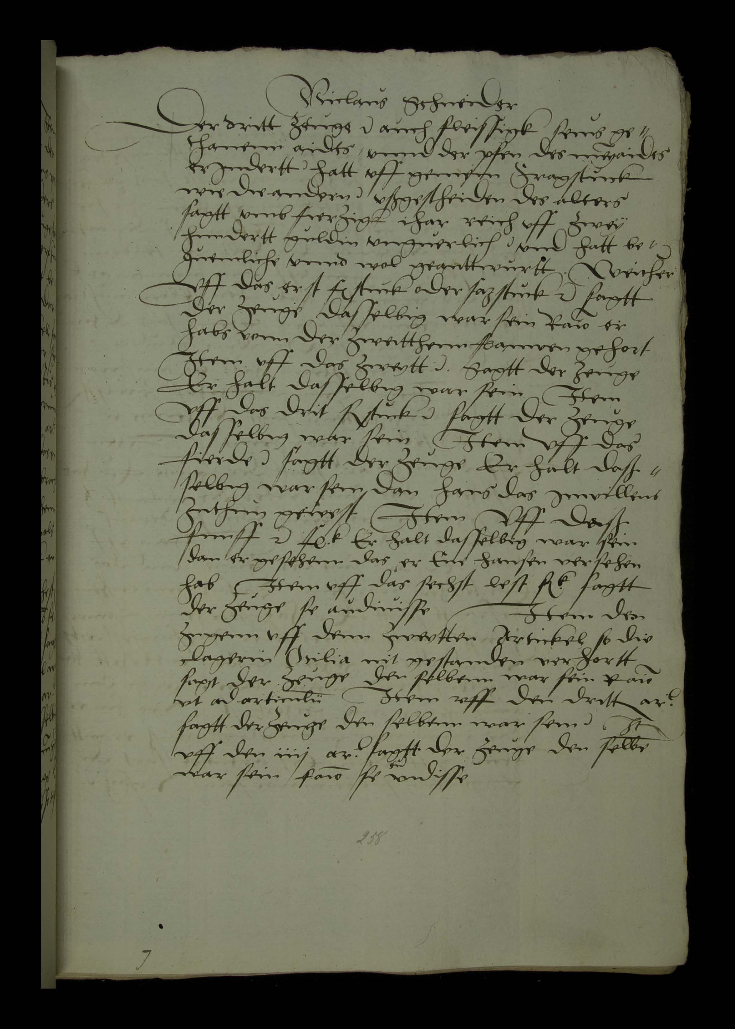 Niclaus Schneider. Der dritte Zeuge wurde auch fleißig auf seinen Eid und die Strafe bei Meineid erinnert. Er hat auf die allgemeinen Fragen wie die anderen geantwortet, ausgenommen auf das Alter. Er sagt, er sei um 40 Jahre alt und habe 200 Gulden ungefähr und hat wohl und willig geantwortet. Weiter auf die erste Frage sagt der Zeuge, dass diese wahr sei; Grund: Er habe es von der zweiten Frau gehört. Auf die zweite Frage sagt der Zeuge, dass diese wahr sei. Auf die 3. Frage sagt der Zeuge, dass sie wahr sei. Auf die 4. sagt der Zeuge, er halte dies für wahr, denn Hans hatte den Willen, das zu tun. Auf die 5. Frage, er halte es für wahr, denn er habe gesehen, dass er ihn, Hans, versorgt habe. Auf die 6. Frage sagt der Zeuge, er habe es gehört. Dann wurde der Zeuge auf den zweiten Artikel verhört, den die Klägerin Otilia nicht gestanden hat, da sagt der Zeuge, der sei wahr; Grund: wie zu den Artikeln. Auf den 3. Artikel sagt der Zeuge, dieser sei wahr. Auf den 4. Artikel sagt der Zeuge, der sei wahr; er habe es mit eigenen Augen gesehen.