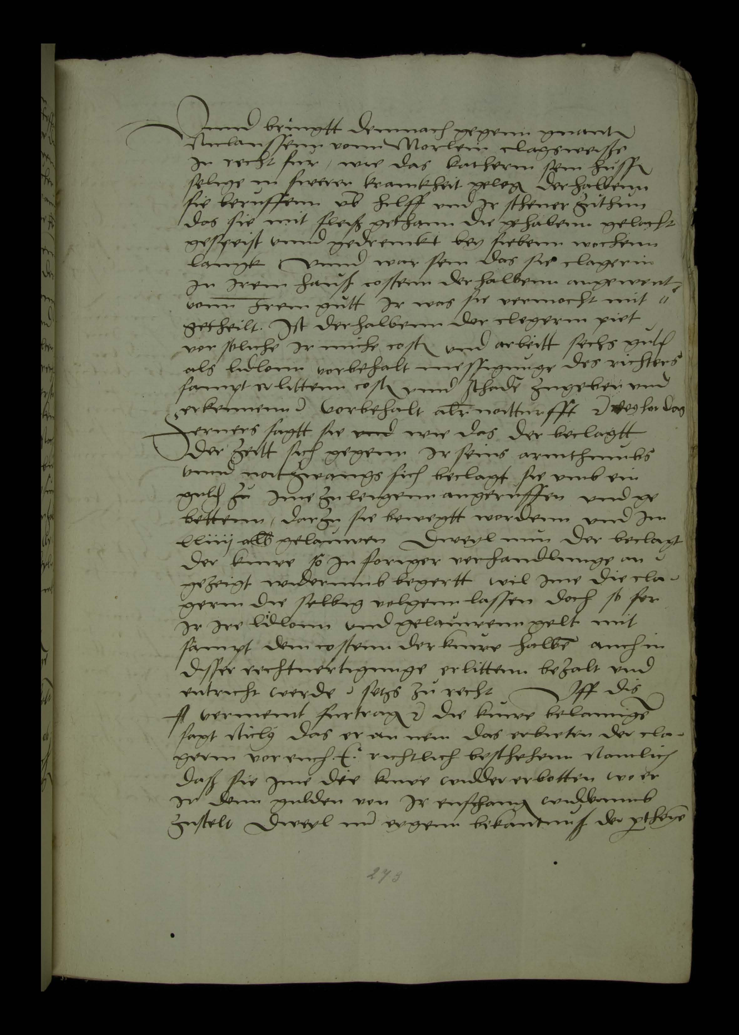 Und sie bringt danach gegen den genannten Niclaus von Morlein als Klage vor Gericht: Dass Katherin, seine verstorbene Ehefrau, in schwerer Krankheit niedergelegen habe. Deswegen habe er sie um Hilfe gebeten und ihre Pflege gebeten. Das habe sie mit Fleiß gemacht. Sie habe sie gehoben und gelegt, gespeist und ihr zu trinken gegeben fast 7 Wochen lang. Und es ist wahr, dass sie, die Klägerin, in ihrem Haus deswegen Kosten aufgewandt habe und der Kranken aus ihrem Besitz gegeben habe, was sie konnte. Deswegen ist es die Bitte der Klägerin zu erkennen, dass ihr für solche Mühe, Kosten und Arbeit 6 Gulden als Arbeitslohn vorbehaltlich der Bemessung durch den Richter mitsamt den erlittenen Kosten und dem Schaden gebühren, alle Rechtsmittel vorbehalten. Der Beklagte hat seinen Tag. Weiter sagt sie: Dass der Beklagte zur Zeit sich ihr gegenüber wegen seiner Armut und seiner Not beklagt habe und sie gebeten habe, ihr einen Gulden zu leihen. Darauf habe sie ihm 24 Albus geliehen. Weil nun der Beklagte die Kuh, die er in der vorherigen Verhandlung angezeigt habe, wiederum fordert, so will die Klägerin ihm diese folgen lassen, doch nur insofern sie ihren Arbeitslohn und das geliehen Geld mitsamt den Kosten – wegen der Kuh und auch wegen dieser Rechtfertigung erlitten – bezahlt bekomme. Das legt sie dem Gericht vor. Auf dieses vermeintliche Vortragen wegen der Kuh sagt Niclas: Dass er das Angebot der Klägerin, das vor Euch Richtern geschah, annehme, nämlich dass sie ihm die Kuh zurückgeben will, wenn er ihre den Gulden, den er von ihr empfangen hat, wiederum gibt. Weil nun ein eigenes Geständnis der Partei vorliegt,